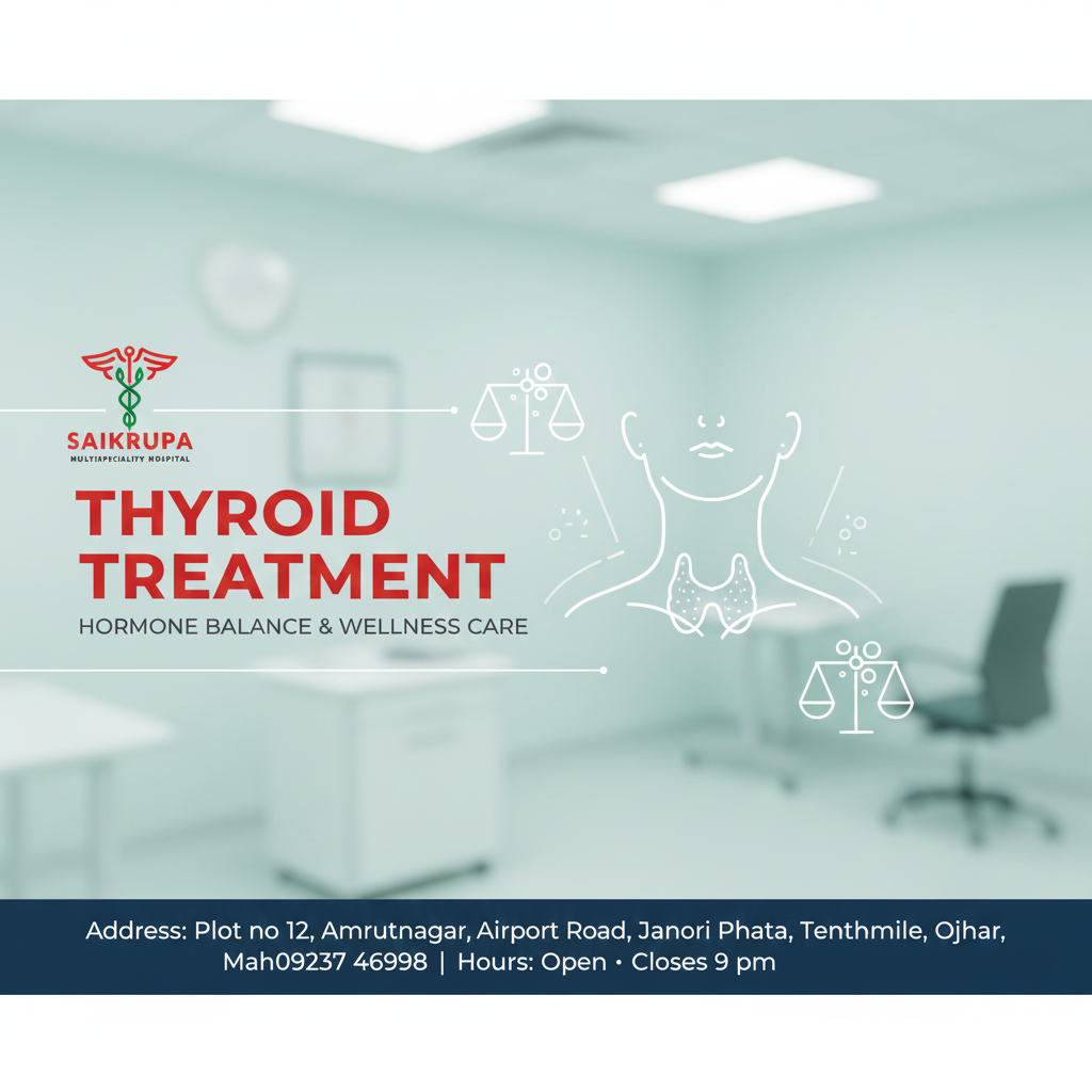 Saikrupa Multispeciality Hospital offers advanced thyroid treatment in Nashik for hypo & hyperthyroidism. Expert hormonal care available near Ojhar.